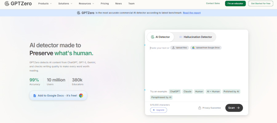 - Can detect AI-generated content from popular models such as Claude, Gemini, ChatGPT, and more
