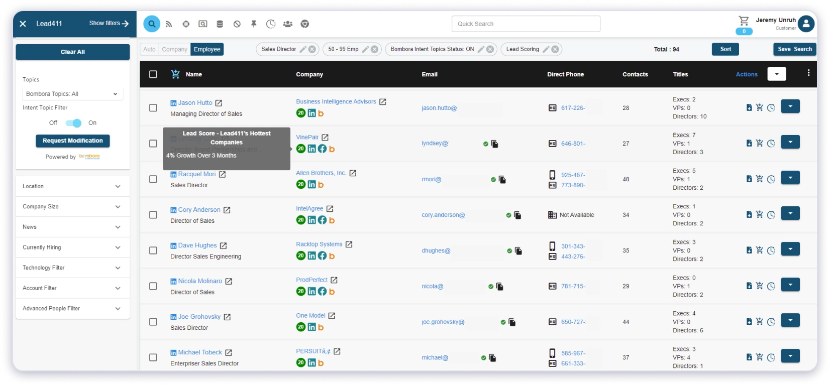 Lead411 is the only Lusha alternative on my list that gives complete unlimited views of emails and phone numbers.