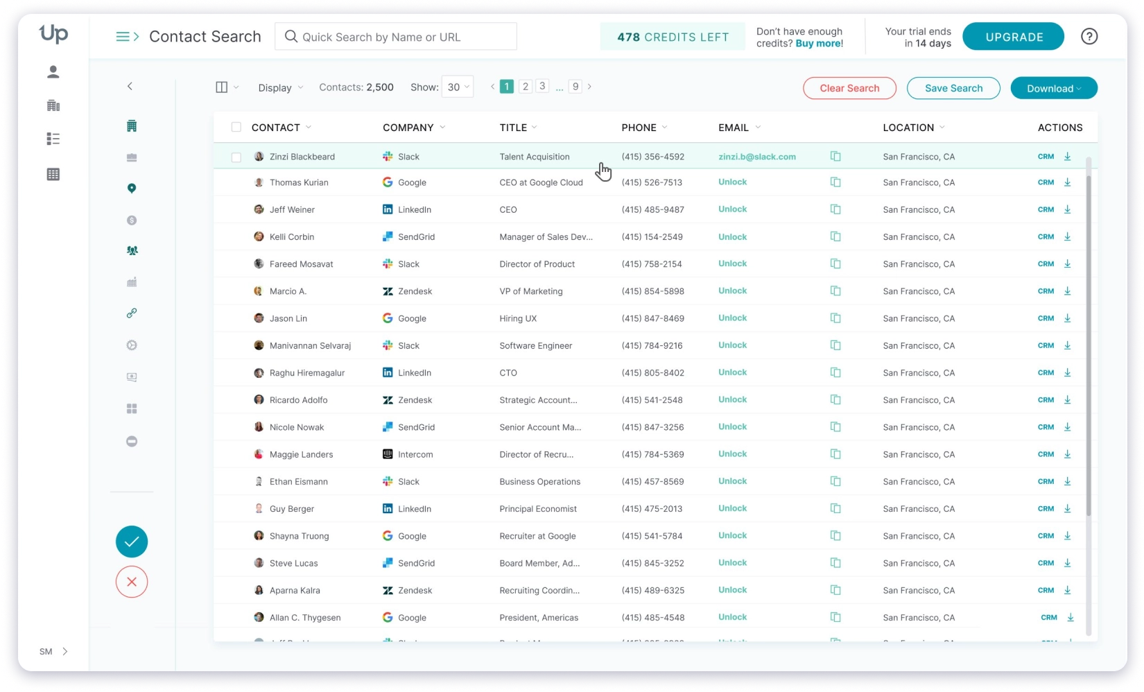 You can also use the search portal to apply filters like job title, company, industry, location, etc., easier to find the right contacts.