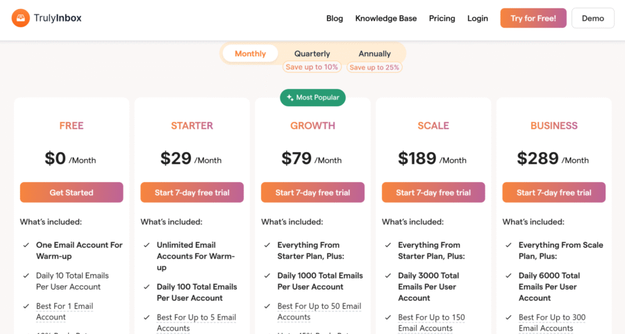 • TrulyInbox charges based on the volume of warm-up emails.