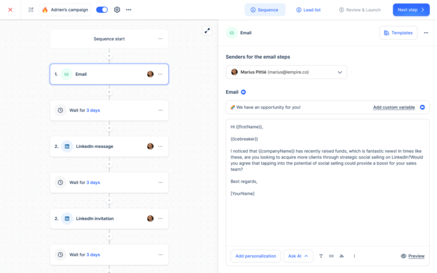 - AI Sequence Copilot to help you create, personalize, and optimize your email sequences